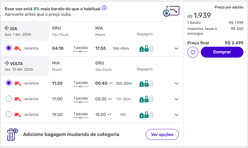 De São Paulo para Miami a partir de R$ 2.499 ida e volta.
