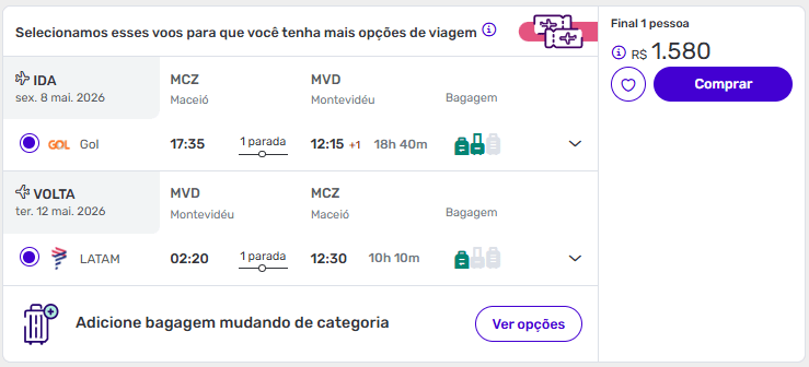 Passagens de Maceió para Montevidéu a partir de R$ 1.580 ida e volta.