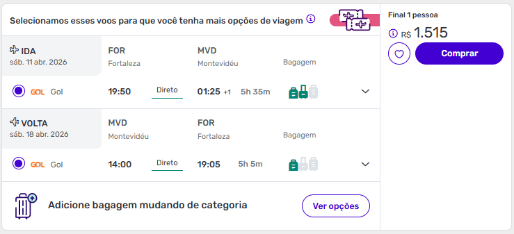 Passagens de Fortaleza para Montevidéu a partir de R$ 1.515 ida e volta.