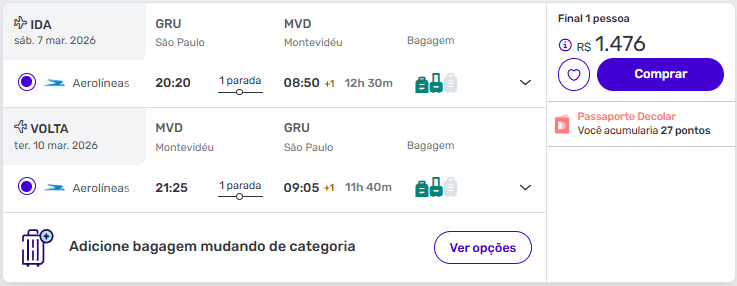Passagens de São Paulo para Montevidéu a partir de R$ 1.476 ida e volta.