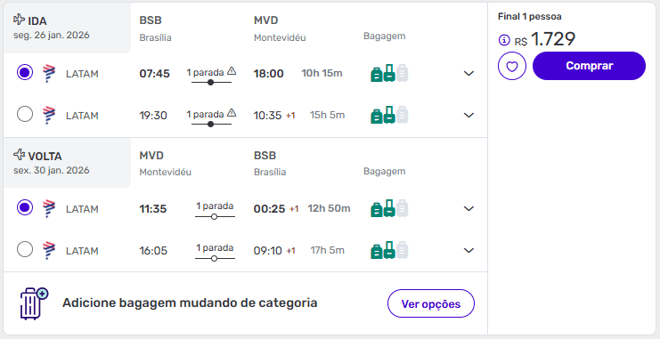 Passagens de Brasília para Montevidéu a partir de R$ 1.729 ida e volta.